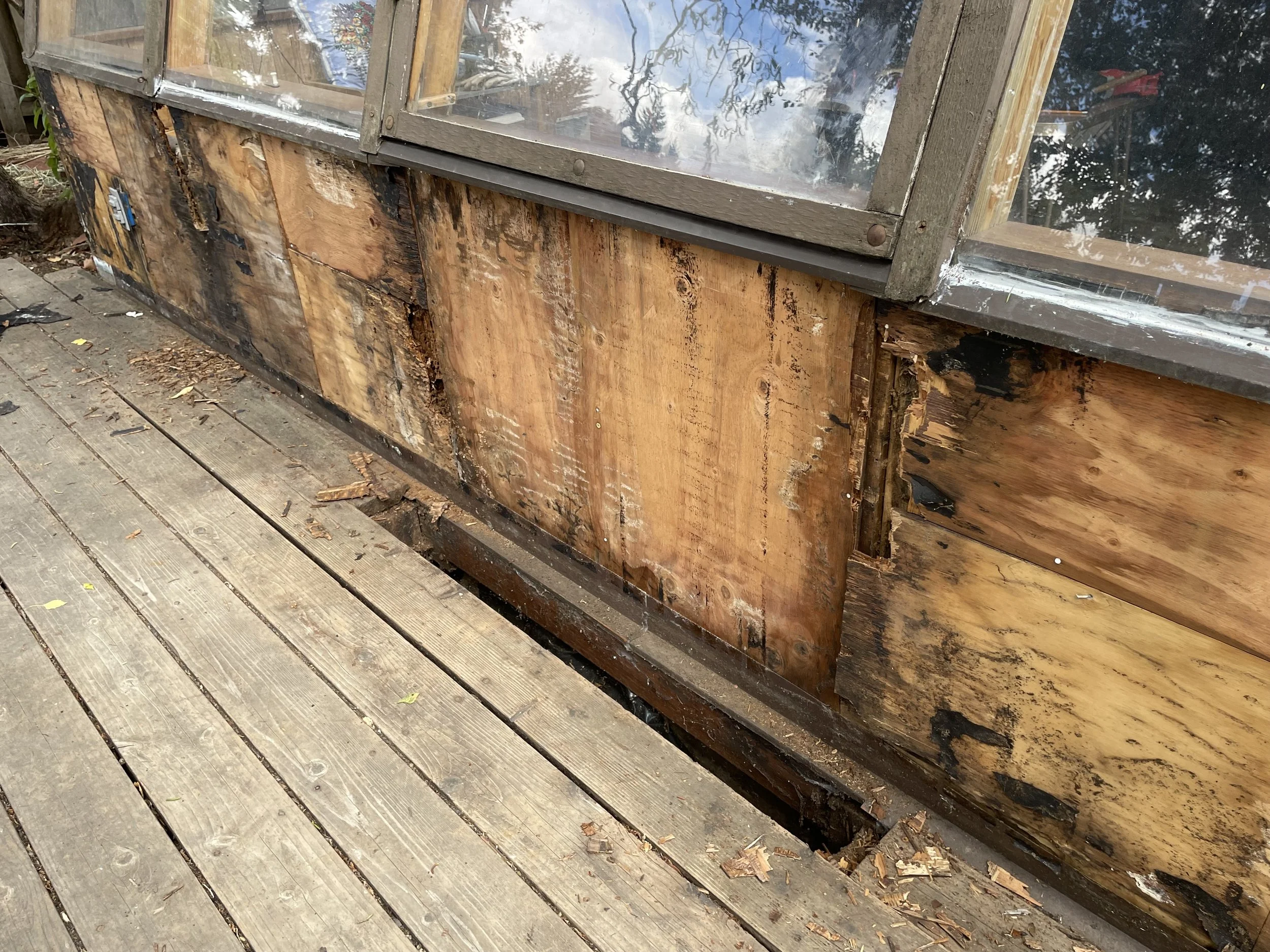 I’m going to start working on the Sunroom this winter and spring. Sam has already cut out and replaced some of the rotted wood.