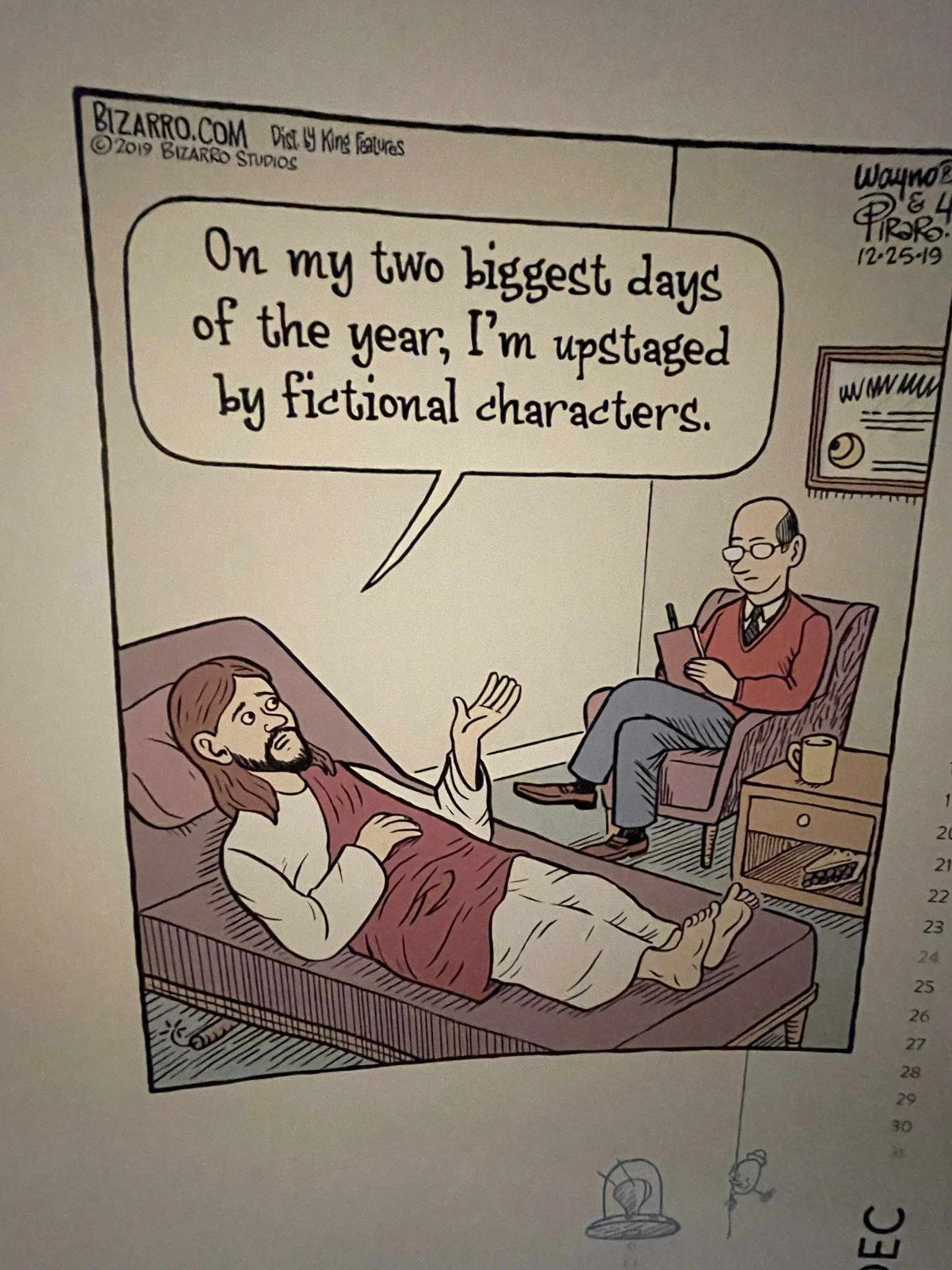 One of my life’s little pleasures is reading Bizarro. I like and respect everything that I’ve seen Dan Piraro and Wayno do. I follow them on social media and I get Dan’s weekly newsletter. They have this great habit of holding up a mirror to society and pointing all sorts of wonderful things out.
